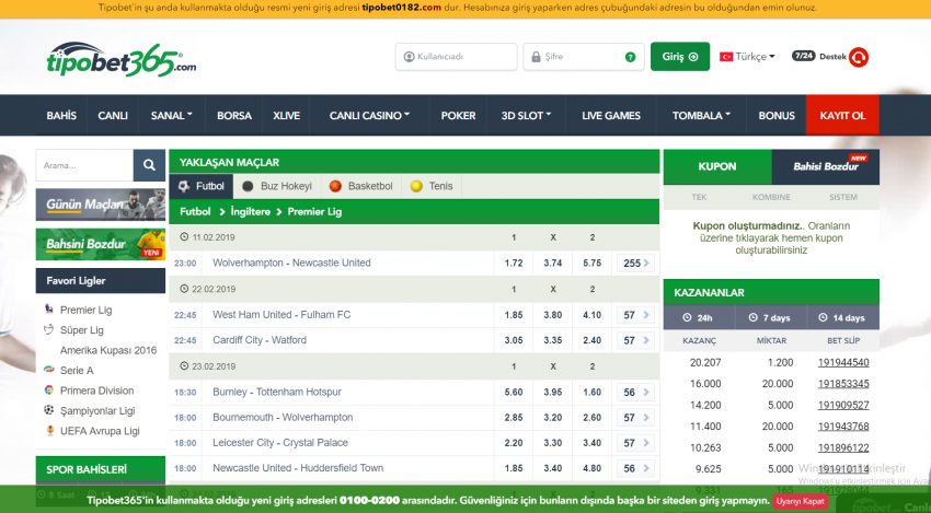 Tipobet’nin yeni adresi http://www.tipobet0193.com olmuştur. Adres çubuğunda www.tipobet0193.com gördüğünüzden emin olunuz.